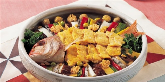 Món Domimyeon, là món lẩu với thịt cá tráp chiên, rau và mì khoai tây. Đây là món ăn được dùng ngay khi đang đun nóng. Domimyeon có hương vị độc đáo, bày trí đẹp và dễ ăn vì nó sử dụng cá phi lê không xương.