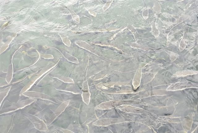 - Mật độ thả: Cá Giò có tốc độ sinh trưởng nhanh, khi thu hoạch, cá thịt đạt trung bình 5kg/con nên mật độ thả nuôi ban đầu cần dừng ở mức 5-6 con/m3·